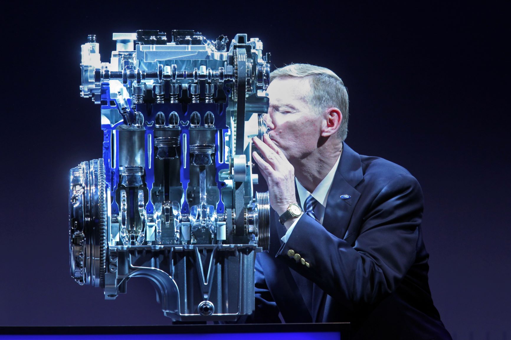 Przedstawiciel epoki downsizingu – sinik Forda 1.0 Ecoboost i Alan Mulally – ówczesny szef Ford Motor Company. Źródło: Ford Motor Company, Licencja CC