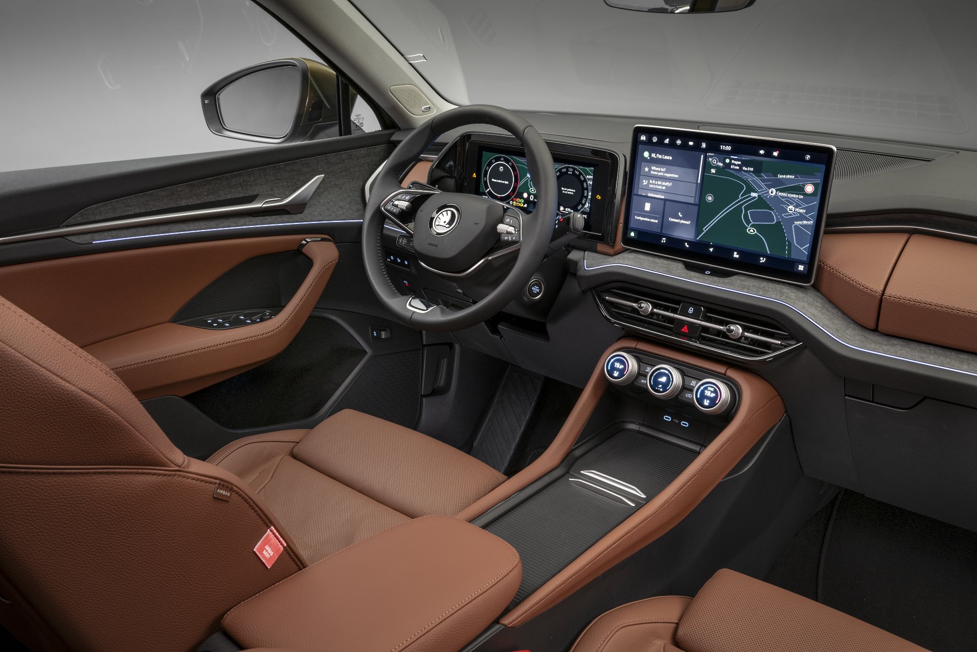 Przestrzeń bagażowa? Służę uprzejmie informacjami: w wariancie 5-miejscowym samochód oferuje bazowo 910 l pojemności bagażnika, tj. o 75 l więcej niż dotychczas. W wersji 7-miejscowej za ostatnim rzędem siedzeń pozostanie jeszcze 340 l na bagaże – o 70 l więcej niż w obecnie oferowanym Kodiaku. Dzięki przedłużeniu nadwozia, pasażerowie ostatniego rzędu mają też o 15 mm więcej miejsca na głowy. Maksymalna pojemność bagażnika (tj. po złożeniu foteli) sięga 2105 lub 2035 l, odpowiednio dla wersji 5- i 7-miejscowej. W 1. generacji Kodiaqa wartości te były mniejsze o 40 i 30 l.