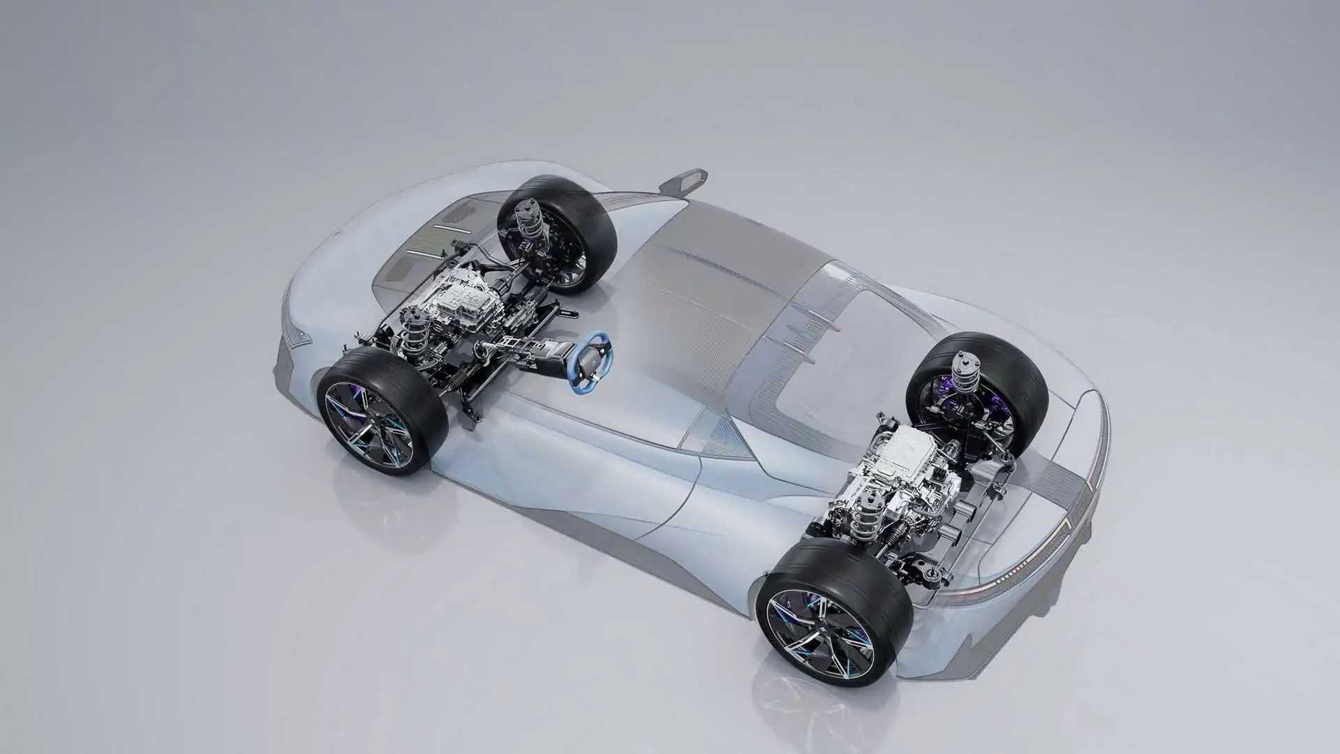 Status modelu skutecznie podkreśla przyspieszenie do setki, zależnie od wersji zajmujące 2,3 lub nawet tylko 1,9 s – na poziomie zbliżonym do najszybszego elektryka, Rimaca Nevery. O ile oczywiście w testach nie okaże się ono lekko podkolorowane. Auto ma co prawda 1224 KM i 1230 Nm (ten drugi parametr producent przedstawia jako 12000 Nm… ale na kołach), lecz rozmiary opon – 245/35 R20 i 305/30 R20 – sprawiają, że kiełkuje we mnie pewna wątpliwość. Rimac ma dużo więcej mocy i szersze – a więc prawdopodobnie przyczepniejsze – opony. Mniejsze wrażenie robi prędkość maksymalna na poziomie 250 km/h – co prawda nie jest to mało, a samochód jest elektryczny, ale to poziom raczej szybkich sedanów niż modeli supersportowych. Nie powala też bateria, z pojemnością 75 kWh i teoretycznym zasięgiem 506 km – aha, tu mi czołg jedzie, niecałe 15 kWh na 100 km w ponad 1000-konnym potworze, chyba na zjeździe z Himalajów.