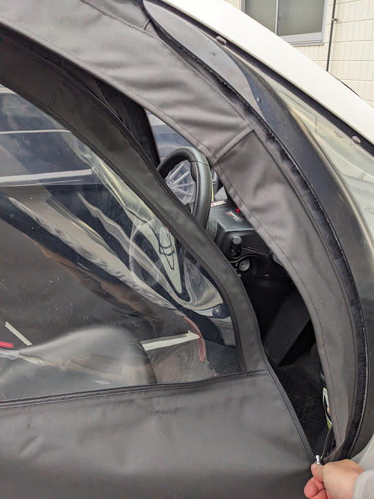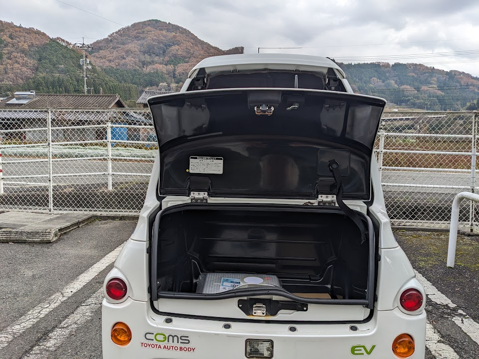 Jednym słowem: zaskoczenie, a nawet delikatny szok. Nie będę ukrywał: prostota tego auta wprawiła mnie w kompletne osłupienie. Toyota COMS nie ma w zasadzie żadnego zbędnego wyposażenia. Drzwi odpina się suwakiem, we wnętrzu czeka na użytkownika krzesełko, wskaźnik prędkości przypomina te z rowerów elektrycznych. Nie ma ogrzewania. Na desce rozdzielczej jest miejsce na kubek, chwytak na telefon i mały schowek w którym był znak kōreisha (高齢者マーク) do przyczepienia do auta przez starszych kierowców. Patrząc po wnętrzu auta bardzo mocno przypomniał mi się Trabant 601, który był pierwszym autem jakim jeździłem z rodzicami.