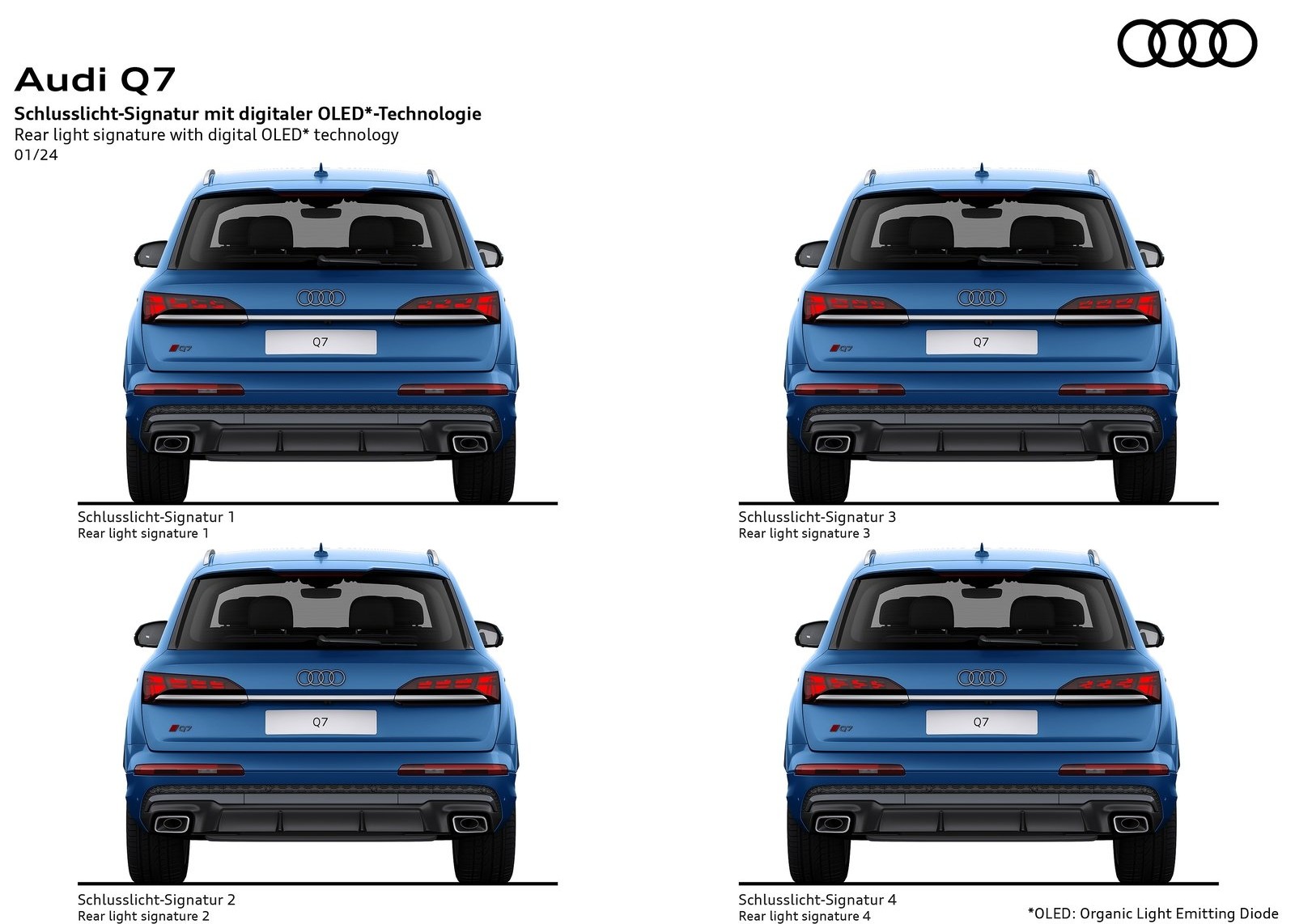 Kontynuując wątek świateł – tak jak poprzednio otrzymujemy LED-owe reflektory, w najwyższej wersji w technologii Matrix LED ze wzmocnionym źródłem laserowym o długiej wiązce (reflektory poznamy po niebieskiej poświacie obudów elementów świetlnych i widocznym oznaczeniu). Teraz natomiast kierowca będzie miał możliwość wyboru w systemie sterowania MMI sygnatury świetlnej (stopnia makijażu zmrużonych oczu), a także wzoru świetlnego tylnych świateł pozycyjnych. OLED-owe lampy tylne będą miały możliwość aktywowania świateł w zależności od dystansu od samochodu za nami. Będziemy mieli do wyboru 4 wzory rozświetlenia, w pakiecie otrzymamy również powitalne animacje świateł.