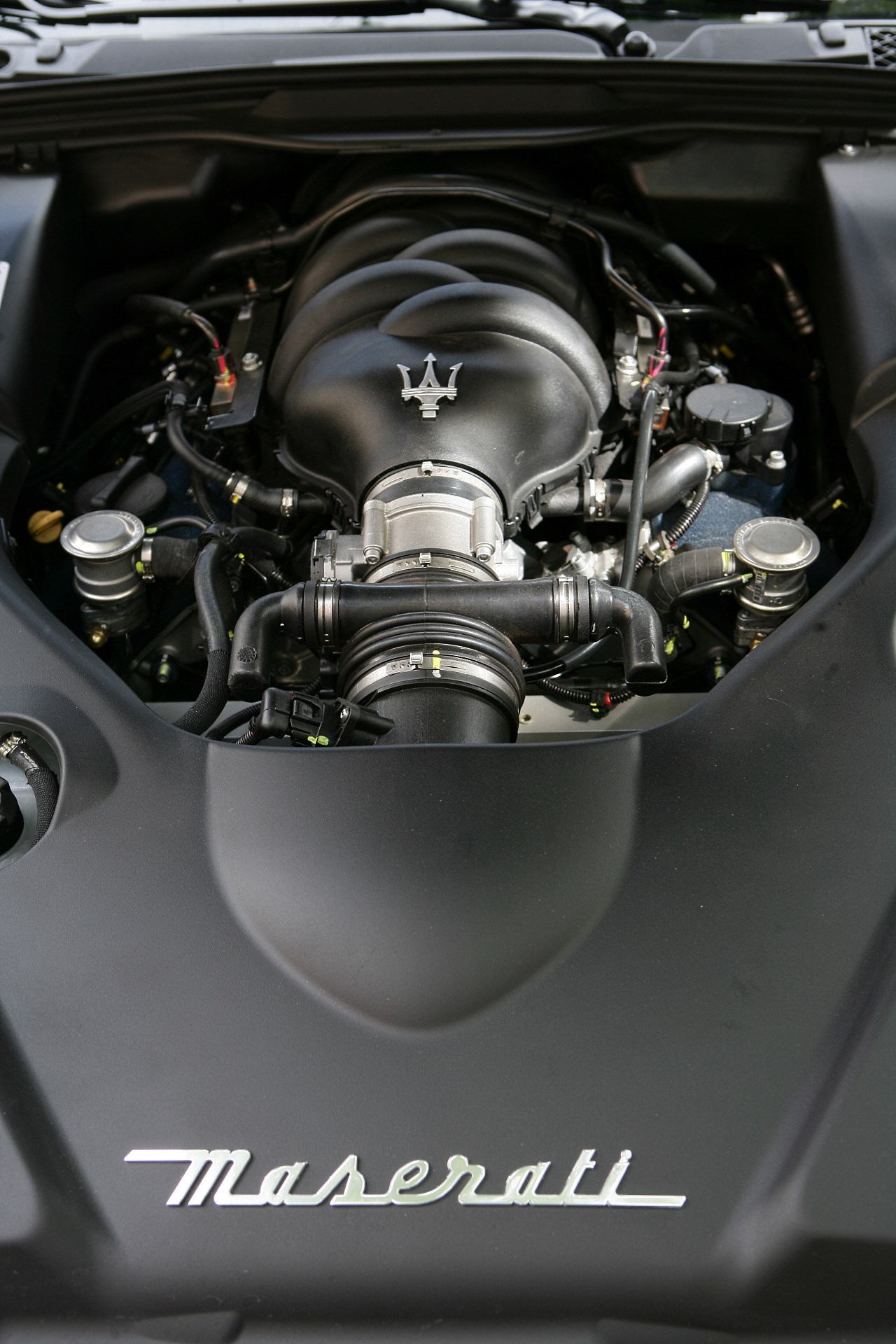 Silnik w GranTurismo jest wręcz wciśnięty w przegrodę, do tego stopnia, że w całości znajduje się za przednią osią. Przed przednimi kołami znajduje się wyłącznie chłodnica, trochę rurek, plastikowych zbiorniczków i nic więcej. Dołóżmy do tego fakt, że silnik wygląda naprawdę znakomicie. W końcu Włosi kiedyś zmajstrowali Busso z chromowanymi kolektorami, który wyglądał równie dobrze, co brzmiał, więc nie powinno nikogo dziwić, że do wyglądu silnika w Maserati także się trochę przyłożyli.