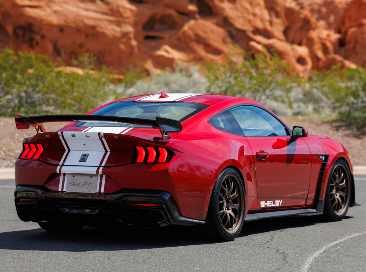 Pojawiły się nowe 20-calowe felgi, na dole drzwi pojawił się napis SHELBY. Jest też charakterystyczny dla Shelby Super Snake szeroki pas przebiegający przez górną część samochodu.