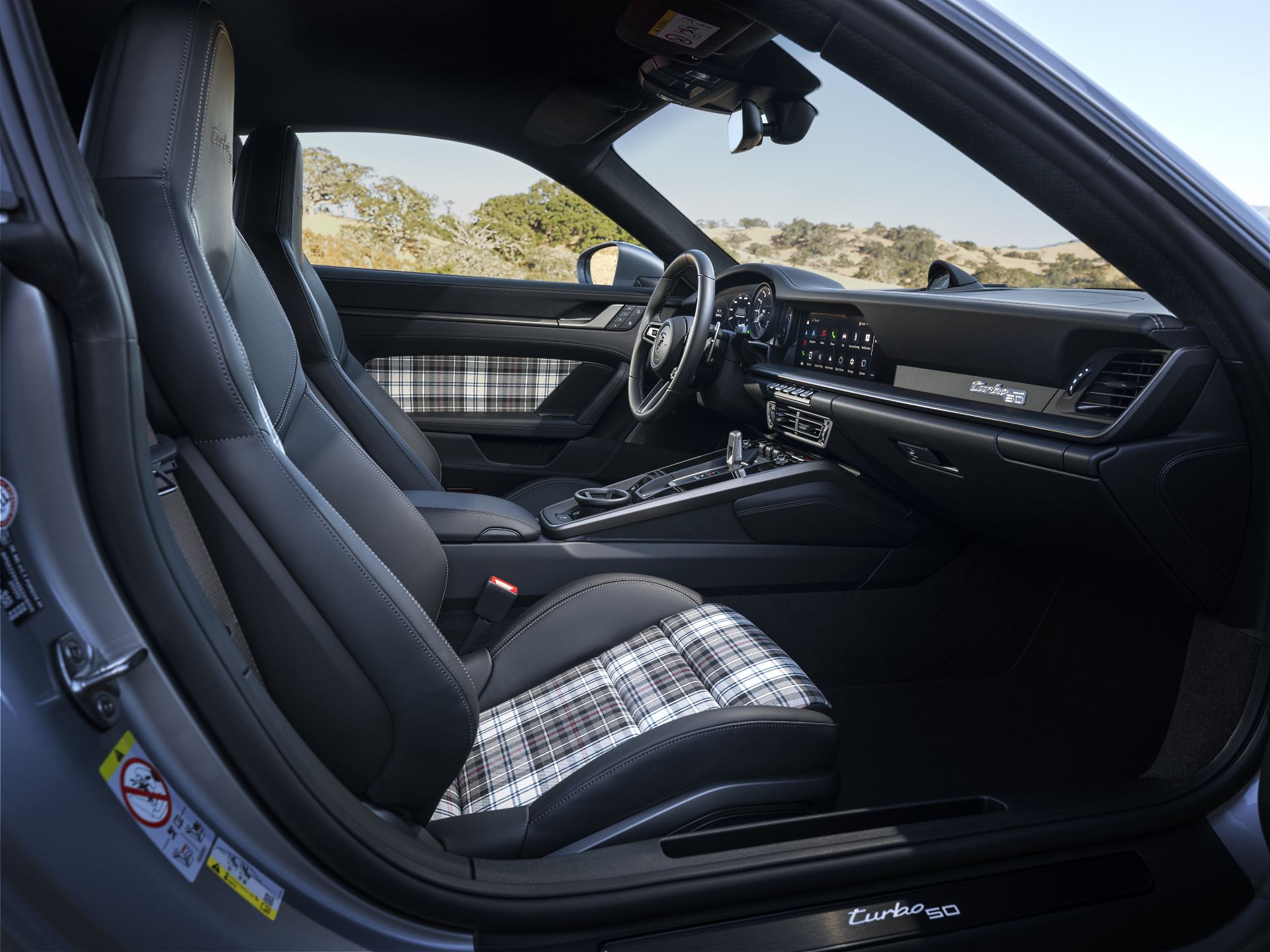Wnętrze samo w sobie również nie zmieniło się drastycznie, ale tapicerka – mamy tu skórę oraz tartan McKenzie na fotelach i drzwiach – nawiązuje do klasycznych Dziewięćset Jedenastek. Na zagłówkach mamy wyszyte w srebrnym kolorze Turbo 50.