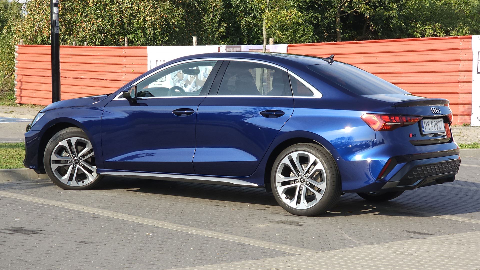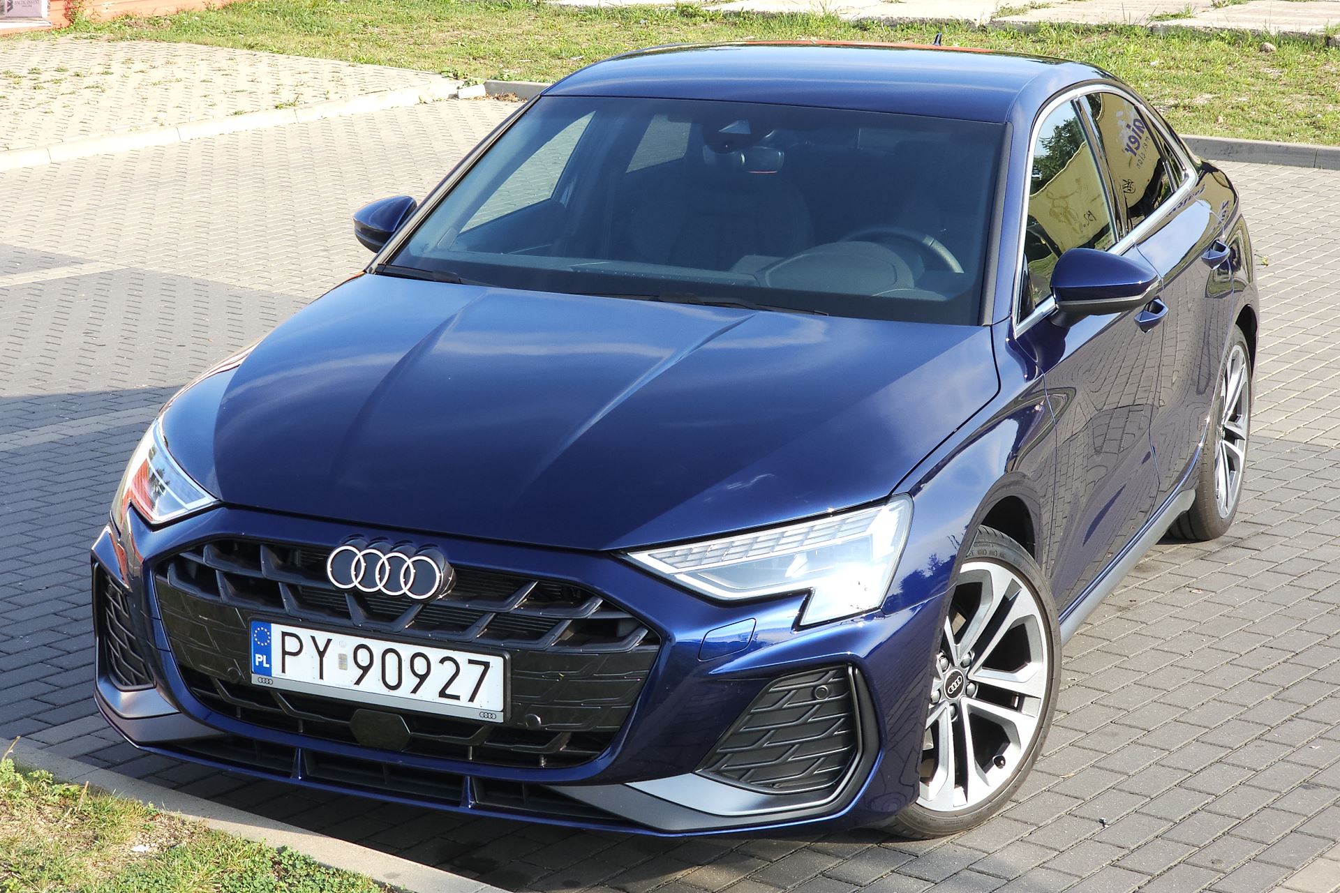 Audi A3 raczej nie trzeba nikomu przedstawiać – w końcu jest na rynku już od ponad ćwierć wieku i doczekało się przez ten czas czterech generacji oraz sporej popularności na polskich drogach. Krócej jest z nami zgrabna wersja sedan – to taką właśnie przyszło mi testować, ze 150-konnym silnikiem diesla, 7-biegową przekładnią DSG i napędem na przód. Oprócz tego: „obowiązkowy” pakiet S-line, spora garść wyposażenia (typowo dla testówki) i bardzo ładny kolor niebieski Navarra. No, to skoro wiadomo już, co to za zwierz, to możemy przejść do wrażeń z obcowania z nim. A że wspomniałem już trochę o nadwoziu, to może od niego, klasycznie, zacznijmy…