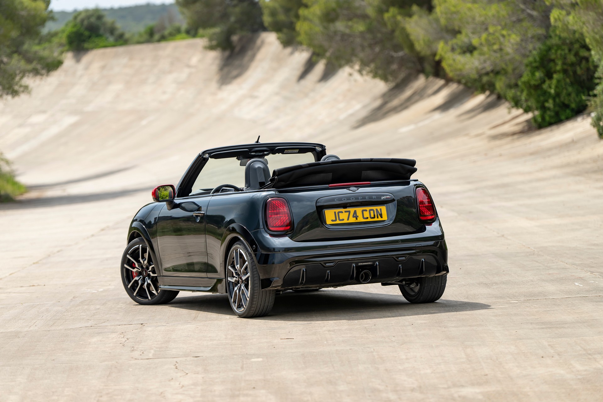 Z przodu nowe Mini JCW wygląda prawie identycznie jak znany już model z napędem elektrycznym, ale ma m.in. inny (choć podobny) grill. Z tyłu mamy ciekawostkę: kształt lamp. W Cabrio ich kształt jest taki jak przed liftingiem/zmianą generacji, choć mają inne wypełnienie – nadal jednak z motywem Union Jack. Hatchback otrzymał inne tylne oświetlenie. Szczerze mówiąc, zdecydowanie bardziej pasuje mi wygląd wersji z otwartym dachem.