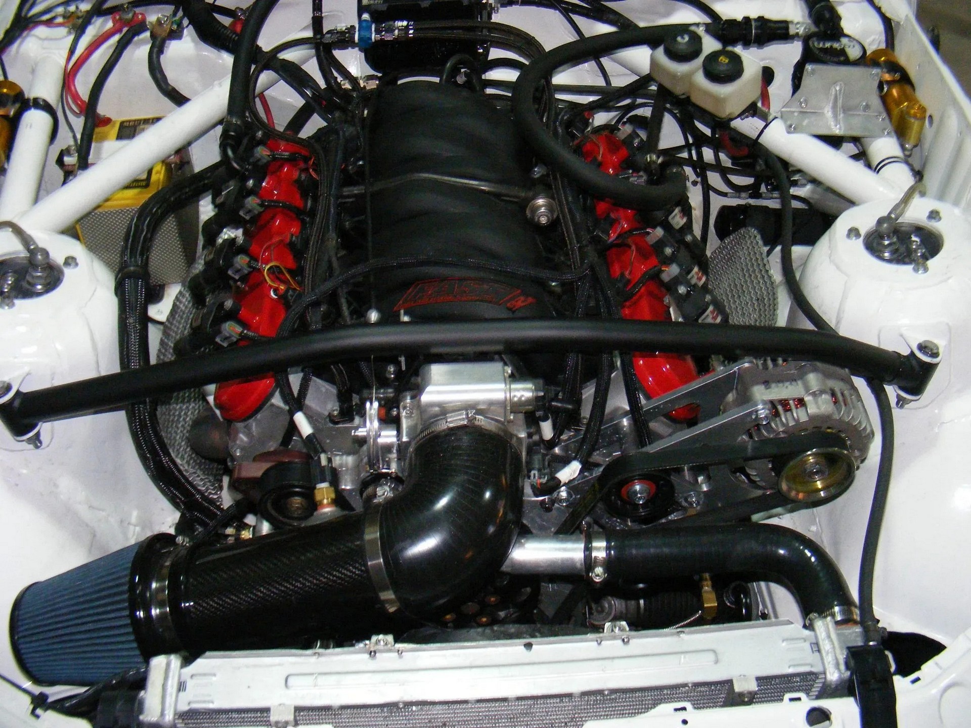 Zostawiając zamieszanie związane z dawną ofertą BMW M na Amerykę Północną, przejdźmy do tego co w aucie znajduje się teraz. Jest to siedmiolitrowe V8 zbudowane w październiku zeszłego roku przez Horsepower Research z McKinney w Teksasie. W silniku zastosowano m.in. wał korbowy Callies LS CompStar i korbowody tej samej firmy, głowice HPR Performance, wałek rozrządu Comp Cams 620/632 i tłoki Wiseco. Jest też system smarowania z suchą miską olejową. Na hamowni na paliwie 93-oktanowym (według tamtejszych norm; to odpowiednik naszego paliwa 98-oktanowego) silnik generuje 528 KM. Auto ma napęd na tył, a kierowca ma do dyspozycji sześciobiegową ręczną skrzynię biegów Tremec T56.