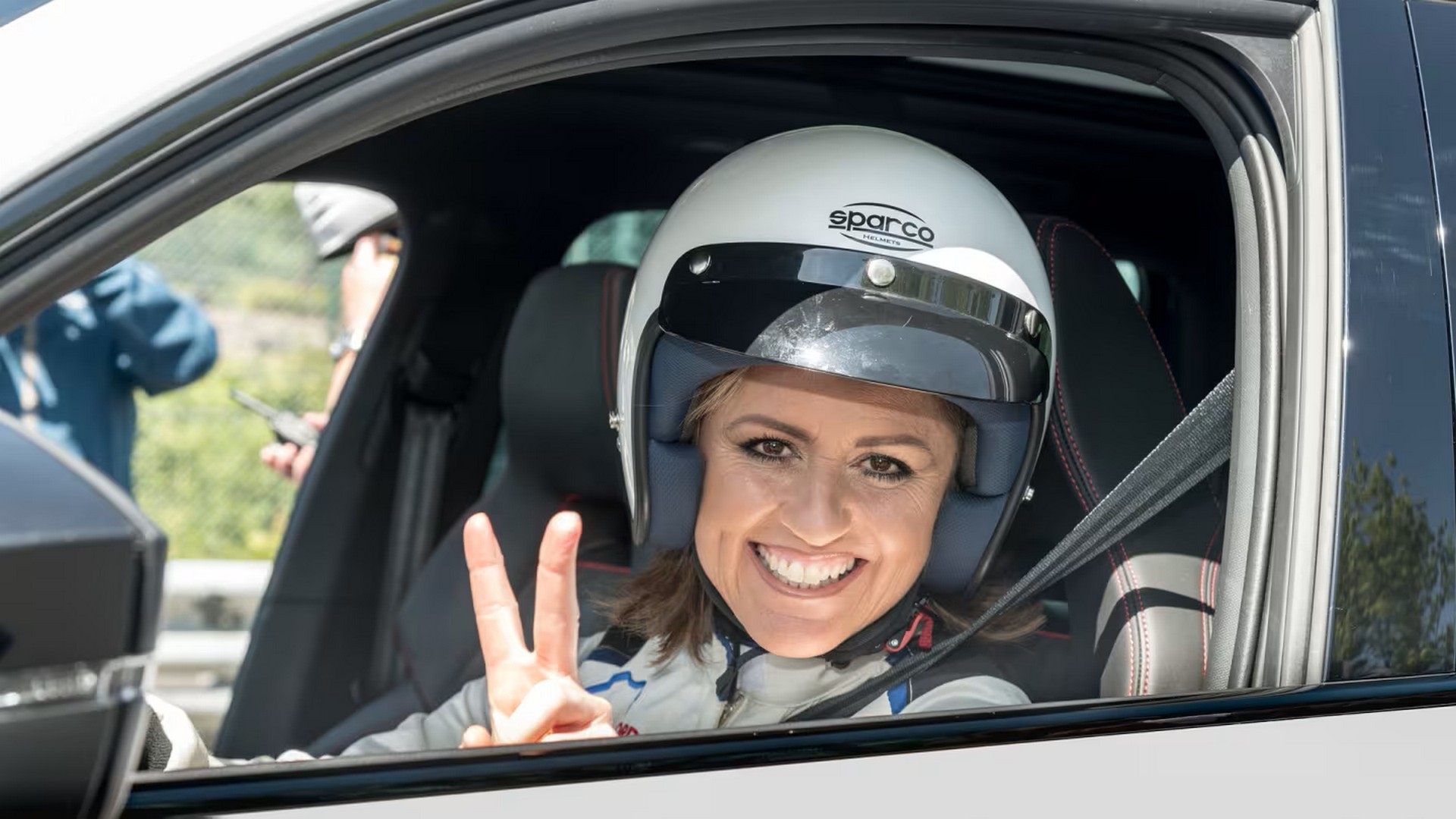 Wracając jednak do samej Schmitz – mając tak pogodne usposobienie i otwarte podejscie do ludzi, a jednocześnie tak duże doświadczenie, wyczucie aut i talent – trafiła też do telewizji. Najpierw lokalnej, niemieckiej, w której została współprowadzącą program DMAX. W pewnym momencie jej drogi skrzyżowały się z naczelnym złośliwcem motoświata – Jeremym Clarksonem. Najpierw przewiozła go swoją taksówką, potem on zaprosił ja do gościnnego występu w Top Gear i tak narodziła się legenda o najszybszym busie na Nürburgringu. Najpierw Jeremy z pewnym trudem zmusił Jaguara S-Type w dieslu do pokonania Nordschleife w 9 minut i 59 sekund. Był z siebie szalenie dumny, na co weszła cała uśmiechnięta Sabine i oświadczyła, że pokona go nawet dostawczakiem. I tak oto ekipa Top Gear zaaranżowała wspaniały wyścig z czasem, w którym to Sabine Schmitz, początkowo z Hammondem na prawym fotelu, Fordem Transitem piątej generacji mknęła jak szalona przez kolejne zakręty.