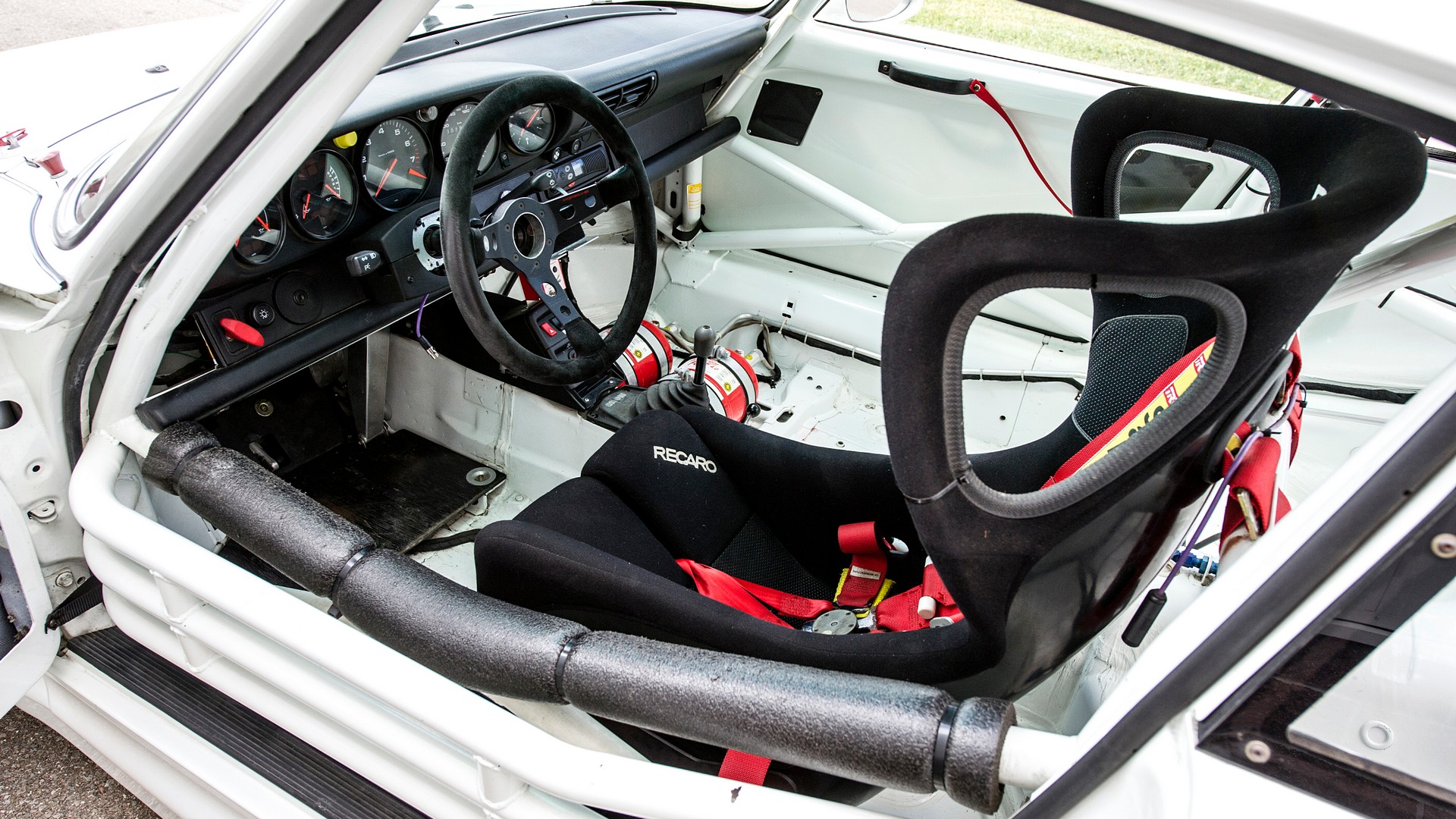 W środku jedynym elementem wspólnym z drogowym 911 była deska rozdzielcza. Mieliśmy w środku jedno miejsce siedzące, klatkę bezpieczeństwa i zestaw gaśniczy. Zniknęły również dywaniki, kierownicę wykończono alcantarą, a boczki drzwiowe wymieniono na lżejsze.