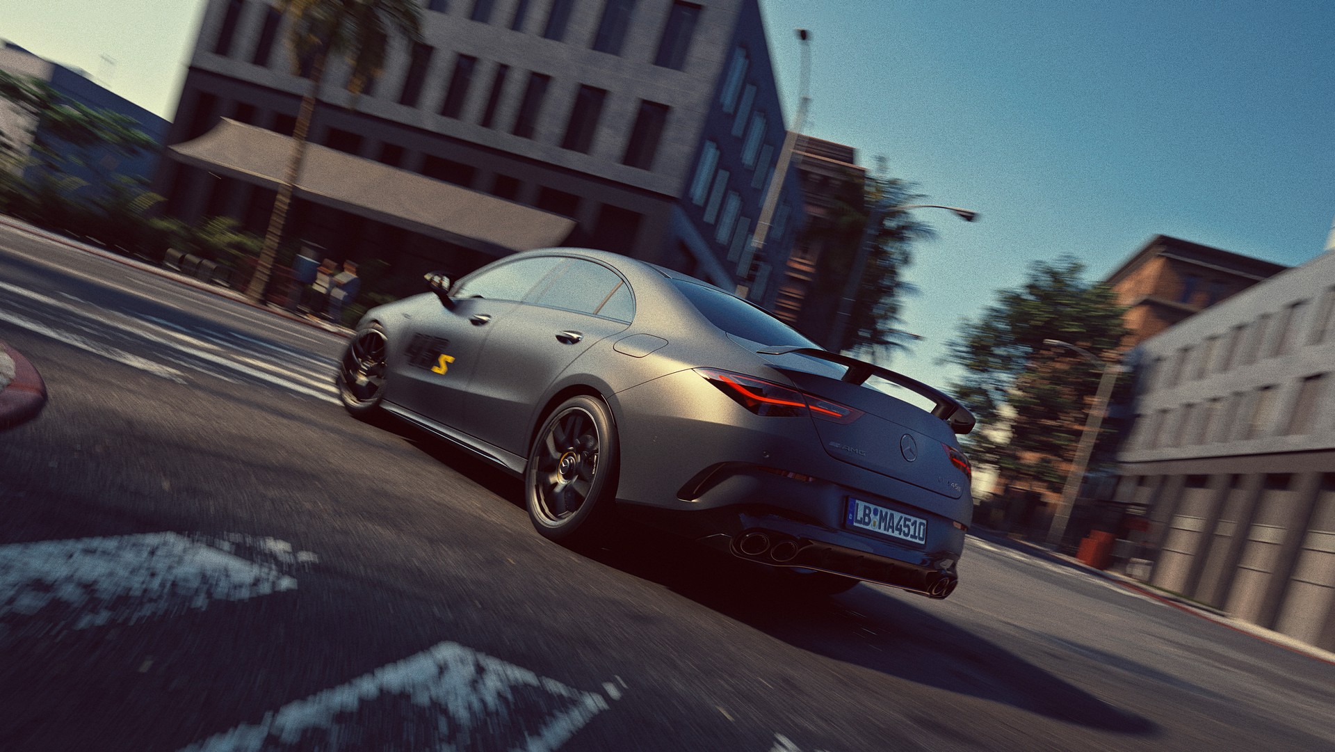 Final Edition wyróżnia się lakierem Mountain Grey Magno z palety Manufaktur, naklejką 45 S na przednich drzwiach oraz żółtymi paskami na lusterkach i napisami AMG w tym samym kolorze na 19-calowych felgach. Jest tu też niewielkie skrzydło w miejscu typowej dla CLA 45 S lotki.