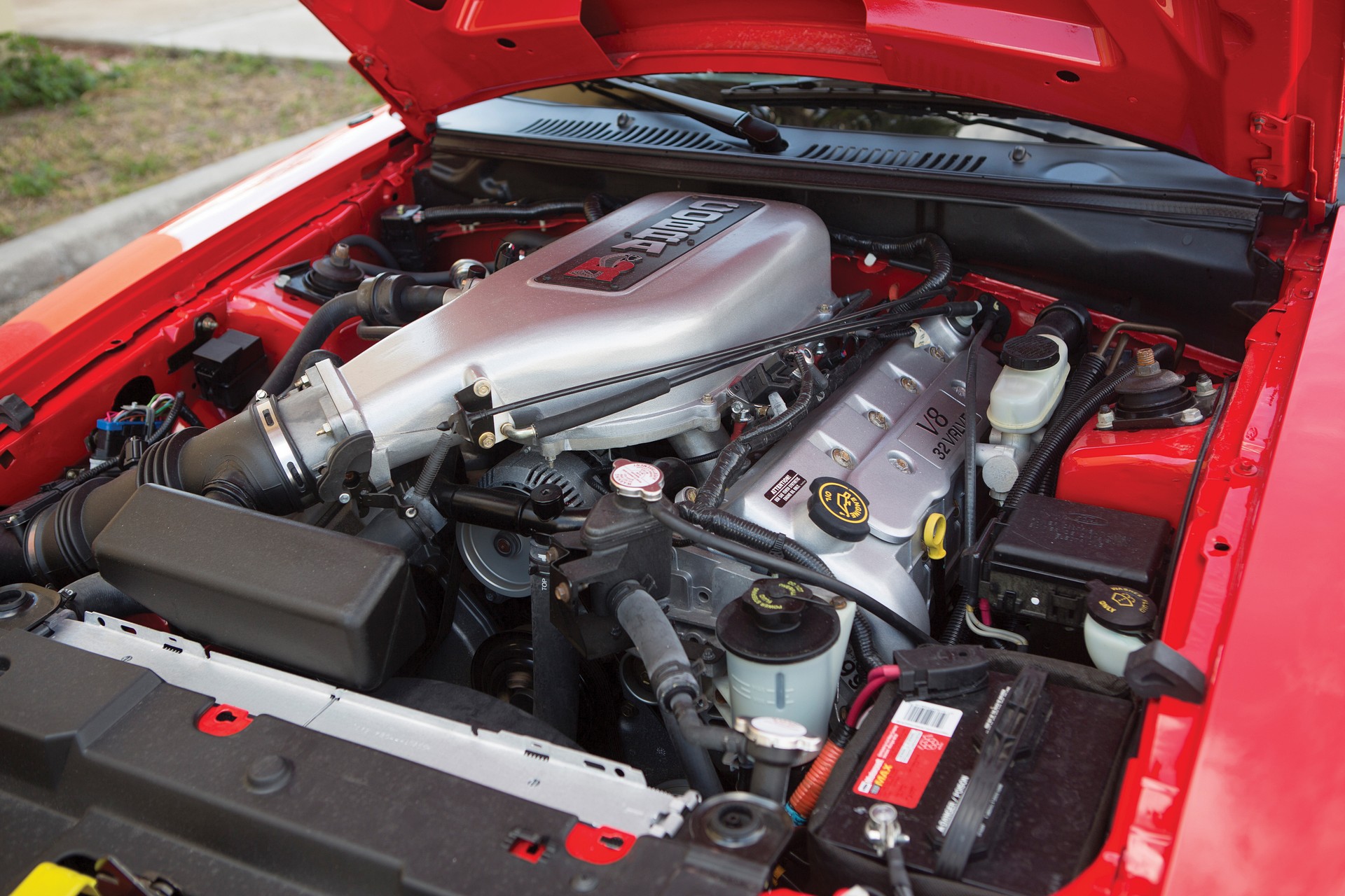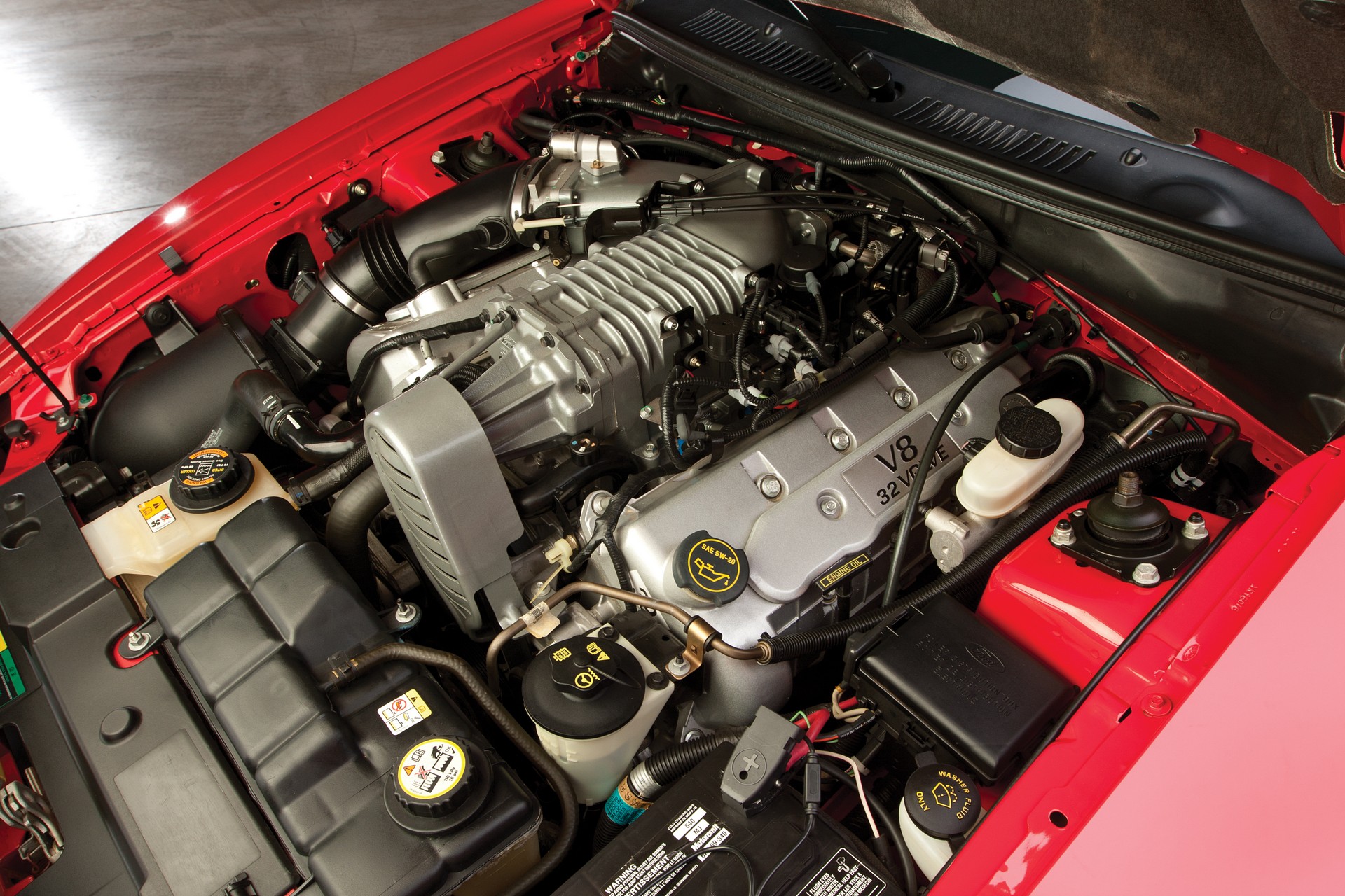 Jak poprzednie „R-ki” miały co najwyżej nieznacznie mocniejsze silniki, tak tutaj była już znaczna różnica. Pod maską wciąż było wolnossące V8 Modular, ale o pojemności 5,4 litra. Moc wynosiła 385 KM a moment obrotowy 522 Nm. Pozwalało to osiągać pierwszą setkę w 5 s, a prędkość maksymalną ograniczono do 240 km/h, choć po zdjęciu blokady realnie można było osiągnąć 270-280 km/h. Należy też dodać, że był to pierwszy Mustang SVT Cobra z sześciobiegową skrzynią biegów.