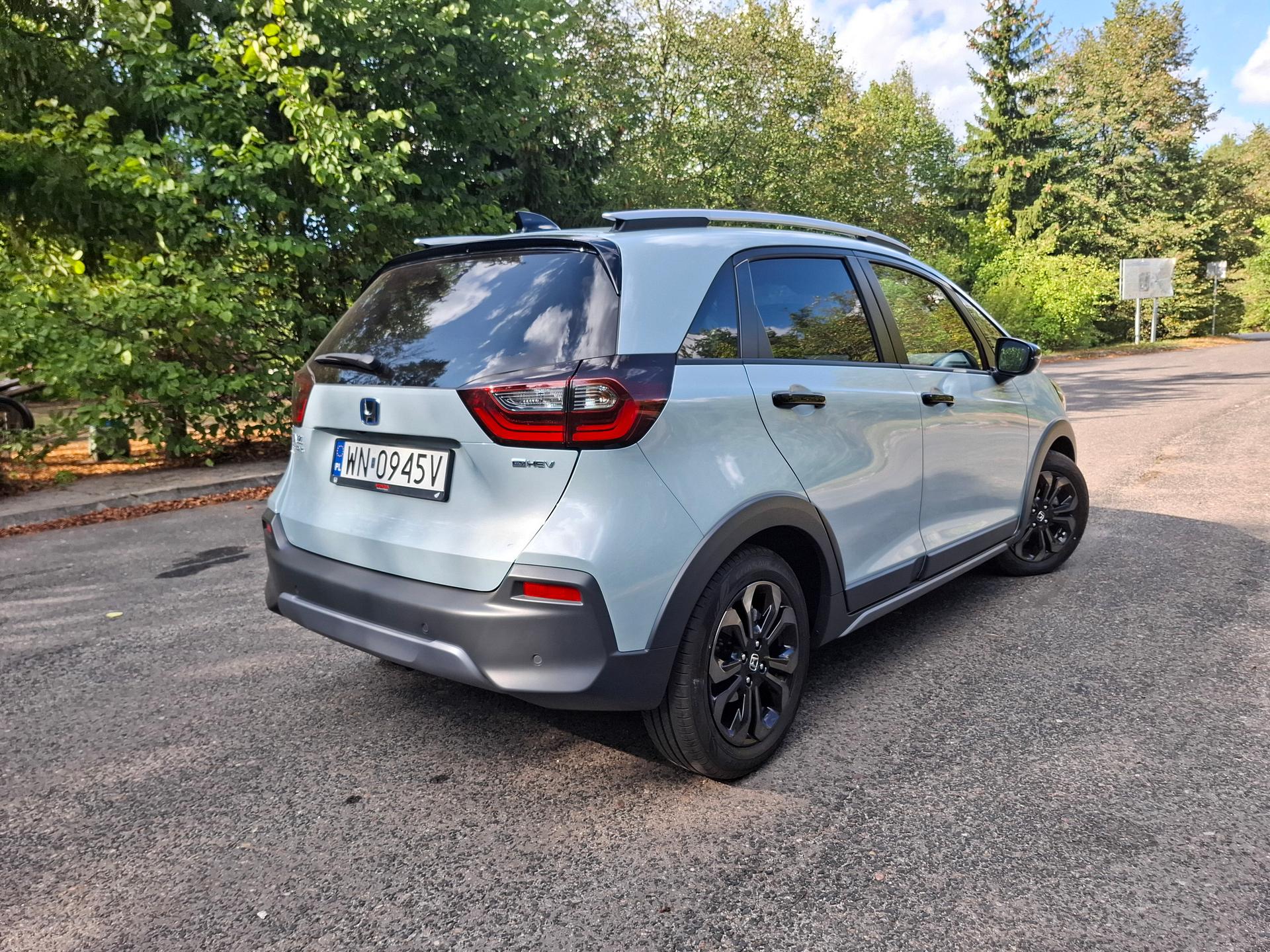 Obecna generacja Hondy Jazz zawitała na rynku w 2020 roku. Zaprezentowano ją od razu w dwóch wersjach: „zwykłej” oraz, że tak powiem, „usuvowionej”. Honda Jazz Crosstar – bo taki przydomek uzyskała ta druga odmiana – miała za zadanie udawać crossovera. Nieco podwyższone zawieszenie, plastikowe nakładki na błotnikach i dolnych krawędziach drzwi, trochę agresywniejszy grill – wszystko to miało sprawić, że Jazz będzie wyglądał modniej. I chyba zażarło, gdyż standardowa odmiana po pewnym czasie wypadła z oferty. A szkoda, gdyż po pierwsze podobała mi się bardziej (szczególnie trochę łagodniejszy, wręcz sympatyczny front), po drugie Crosstar jest zauważalnie droższy – ale do tego jeszcze przejdziemy.