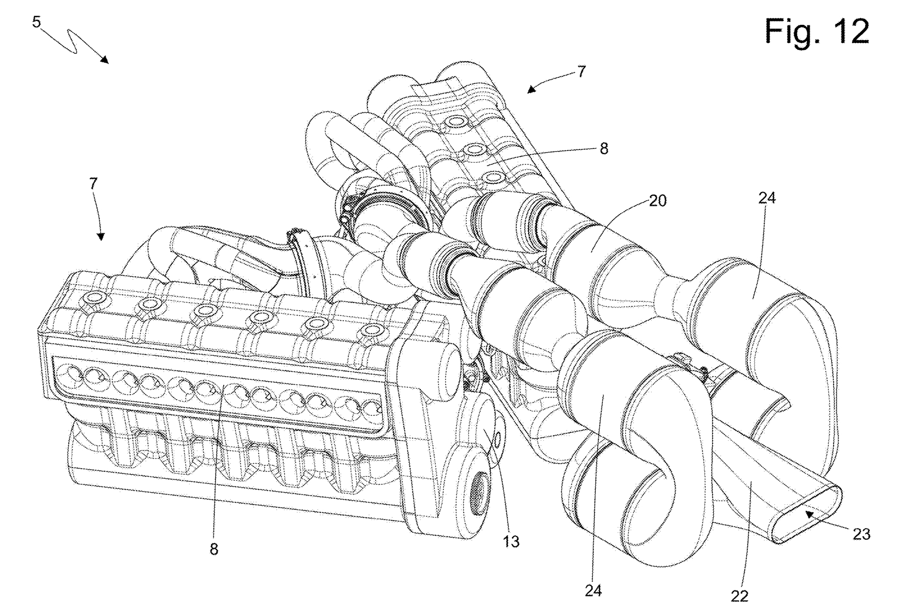 Ferrari złożyło w USA patent na dość niezwykły układ napędowy, składający się z dwóch sześciocylindrowych silników rzędowych, połączonych tylko układem wydechowym, a i to dopiero za kolektorami wydechowymi, oddzielnymi dla każdej „szóstki”. Powodem może być chęć uzyskania oczekiwanego w Ferrari dostojnego ryku dwunastu cylindrów, bowiem wniosek patentowy dość szeroko rozpisuje się o dźwiękach wydechu i trybach jego pracy. Jak to przenieść na koła? Sposobem prostym jak dyszel – oba spalinowe silniki będą napędzały generatory prądu dla silników elektrycznych samochodu. Taka lokomotywa, tylko nieprzytomnie szybka i zapewne o wiele ładniejsza niż prostopadłościenne pudło jakiegoś tam ŁTZ M62.